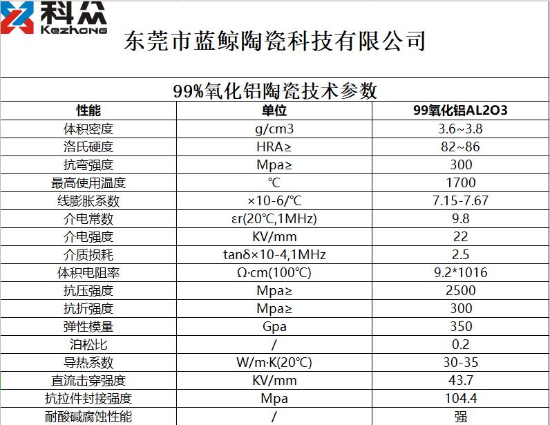 99%氧化鋁陶瓷技術參數: